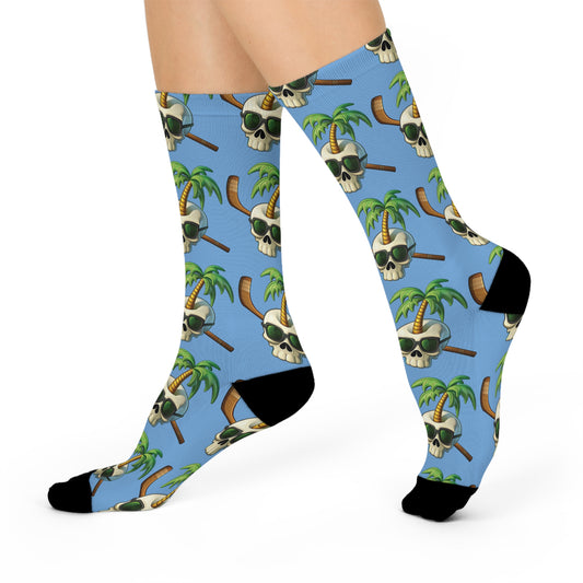 Skull and Palm Tree Cushioned Crew Socks